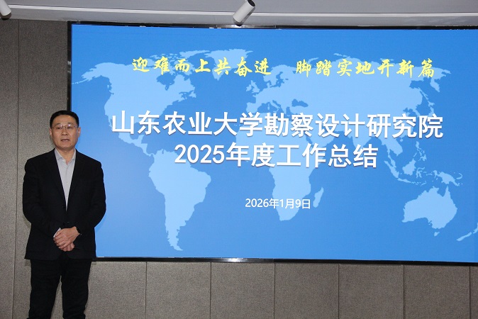 2026年1月9日,山东农业大学勘察设计研究院于国重楼学术报告厅隆重召开2025年度工作总结暨表彰大会。山东农业大学资产处副处长赵建华同志应邀出席会议,全院员工齐聚一堂,回顾过去,展望未来。